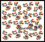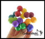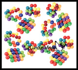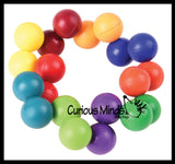 This large fidget is a simple fidget that twists and turns in endlessly. The fidget is made up of 20 bright colorful plastic balls that are connected by pivoting joints. You can twist and turn the spheres to change the shape of the fidget. It can go from a blob to a ring with a simple turn. This infinity puzzle is so fun it is difficult to put down. Makes a moving desk sculpture. Each of the 20 balls is .75", and together is about 4.5" wide x 3".