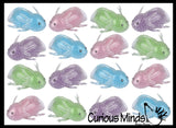 These adorable axolotls are soothing sensory balls. They are filled with thick gel water beads. The axolotls are slightly sticky, and the little balls move around when you squeeze them. These have a very soft and squishy feel, it is very easy to squish. 1.5" tall by 3.5". These have realistic legs and gills!