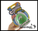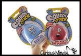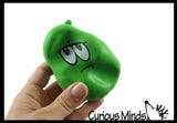 These colorful balloons are filled with flour. They feel really nice when you squish them, and the balloon cover makes them stretchy. They do hold their shape when you squish and flatten them. The balloons are 2.75" x 2.5", and come in 4 different color with different facial expressions. Orange = Don't Worry, Be Happy. Green = Easy Now. Blue = Even Keeled. Red = Roll With the Punches. 5" x 7" Hang Tag Package.