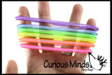 These coil bracelets make a fun and discreet fidget toy for in the office or classroom. The bracelet is made from a stretchy material that can be pulled and twisted, and you can ever wrap and unwrap it around your fingers to keep them busy and your mind alert. These bracelets can be twisted around pencils for a different fun fidget for the classroom or office.