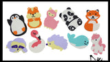 ***** Animal Eraser Set Includes 10 animal styles including: Penguin, hamster, alpaca, panda, fox, sloth, flamingo, hedgehog, narwhal, and unicorn. 1.5" tall.
