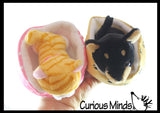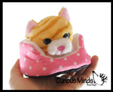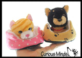 These stuffed animals are tiny little pet cats and dogs, and each animal comes with its own soft plush bed. These are so cute for any animal lover because your little friend can play with you, but lay in its own little bed to rest. Each animal is 5" x 4.75" x 3", and the bed is 4.5" x 4.5" x 2.5". Each pet comes in 2 color styles. Fun for pretend play and veterinarians. These plush toys are small enough to make great little party favor prizes or rewards for any occasion.