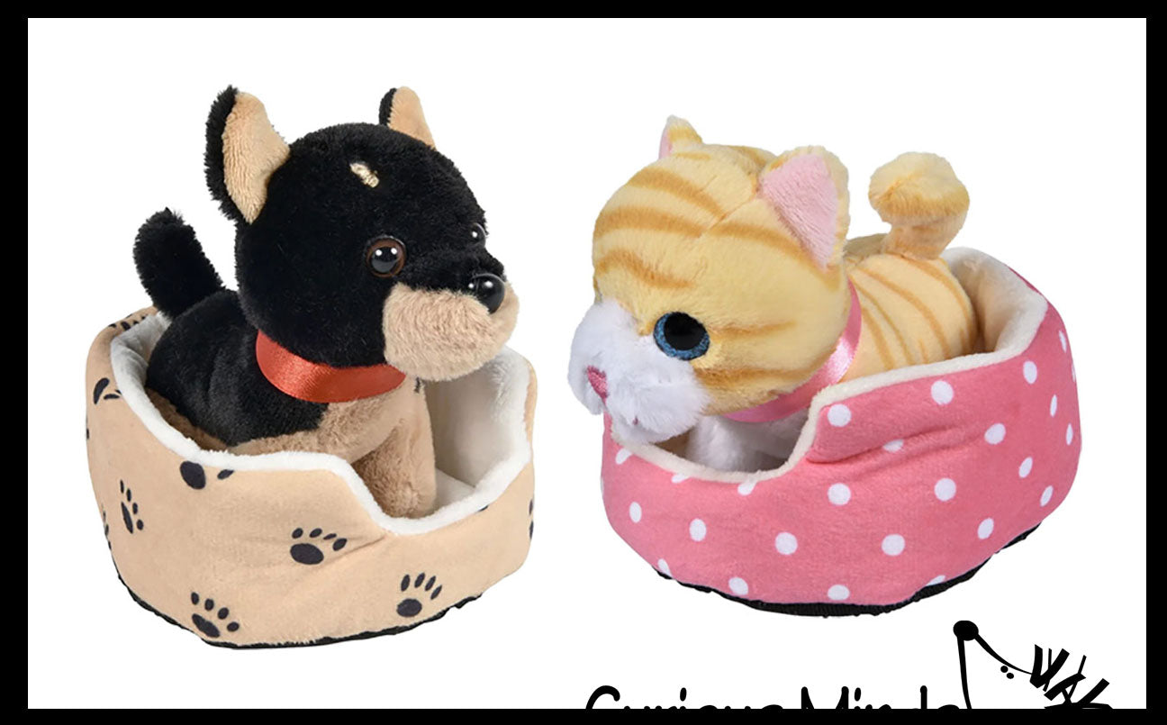 NEW - Cute Cat and Dog Pet in Bed Stuffed Animal Plush Toy - Adorable Stuffie with Pet Bed