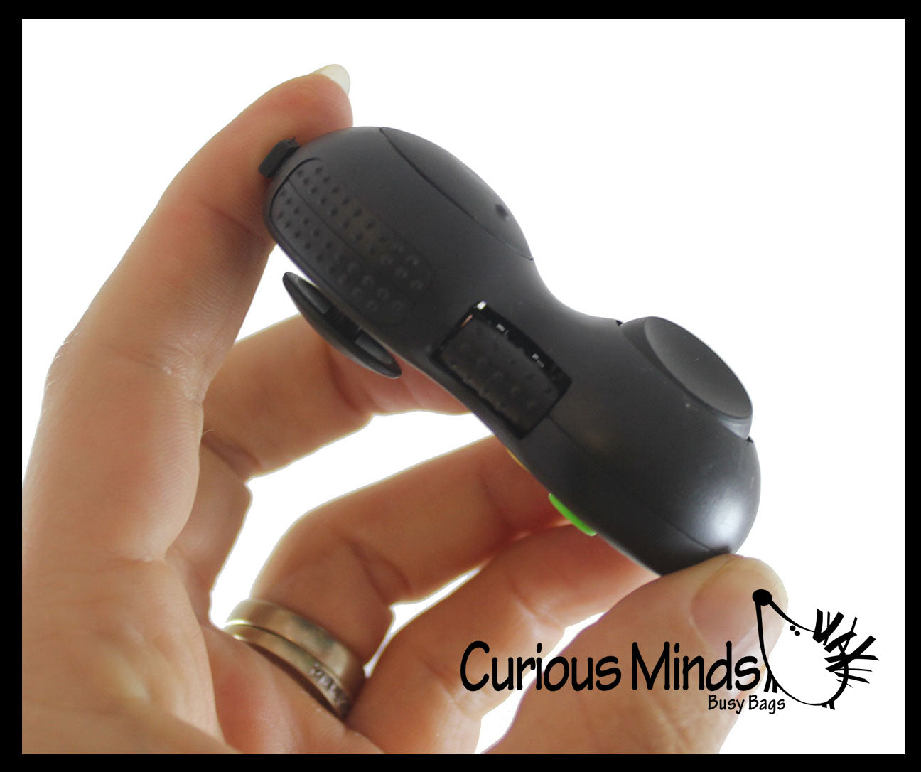 This fidget toy has different activities on each side. The cube has lots of different things on 2 sides to keep your fingers busy including a rolling ball, rotating gears, buttons, a switch, a spinning wheel, spinner and other activities. 2.75" x 1.25". Ages 5+. RANDOM COLORS - MULTIPLE OPTIONS.