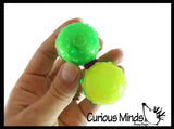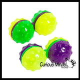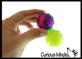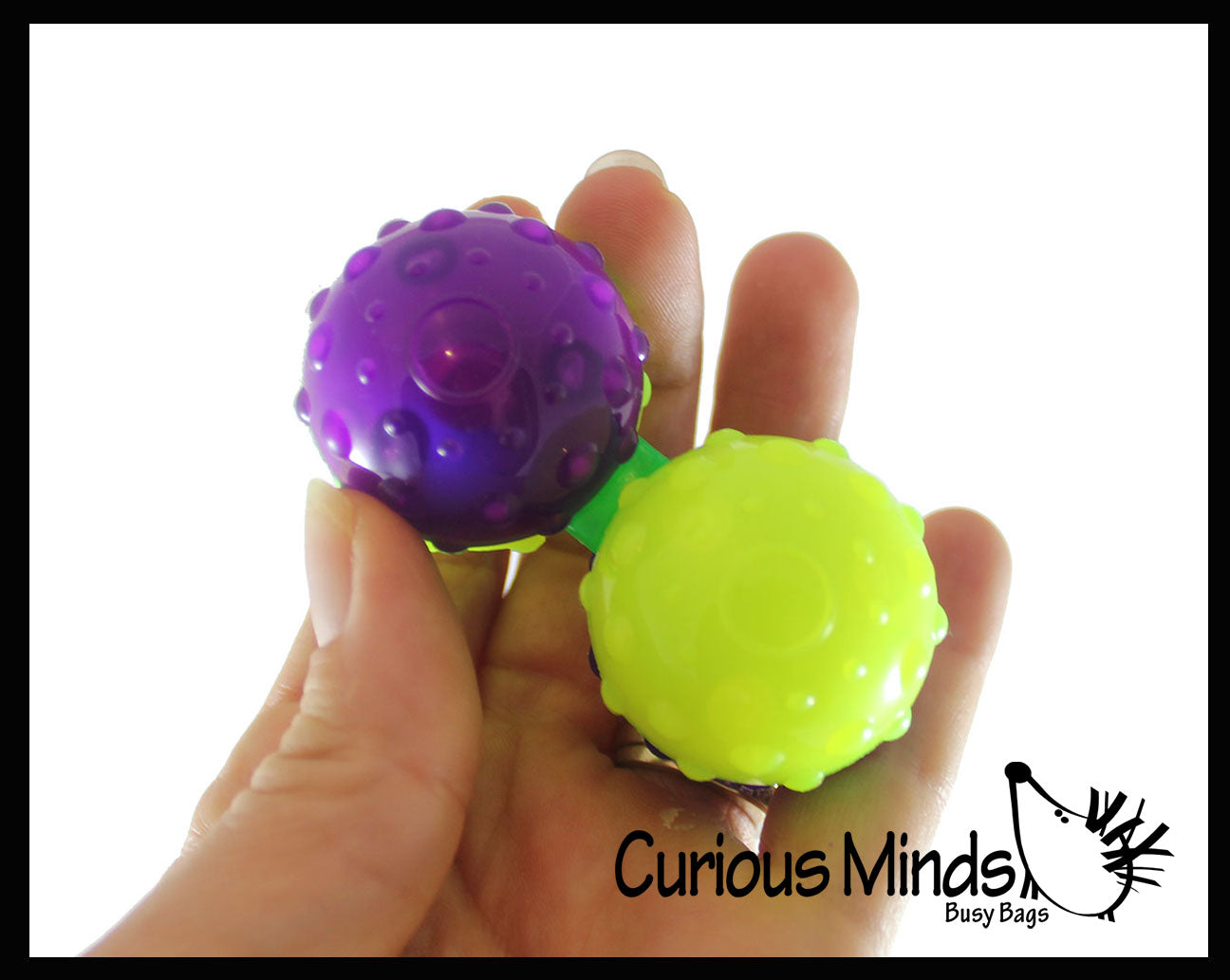 This fidget spinner is a little different than traditional spinners. This spinner is meant to be held by one of the balls, and you spin the other ball around by flicking it. Great for those who like to spin and twirl items like keys. These do light up with motion and have a bumpy grippy texture. It is 2.75" long by 1.5".