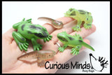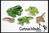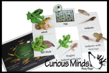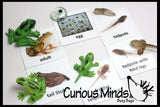 - 5 high quality/realistic miniature tadpoles and frogs. (2"- 3.5" Long) and an egg.