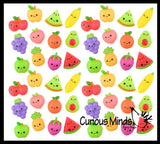 These adorable jiggly critters are Mochi squishy fruits. They have a unique, almost gummy feel. The foods are soft yet almost sticky and make a nice small finger fidget. They are tacky enough to place on a desk to discretely poke with fingers and would make nice finger warm up tools. These little guys do pick up lint because of the tacky surface. You can wash then coat with some cornstarch to bring them back. Each fruit character is individually wrapped making them ideal for party favors or prize boxes. Ages 3+. Each animal is approximately 1.5" -2". Individual display storage box is 2.5" x 1.5". 12 different fruit styles include: Green apple, cherry, grapes, orange, peach, kiwi, watermelon, banana, pineapple, avocado, strawberry, and yellow apple.