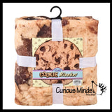 This round blanket is a fun food themed throw blanket. The blanket has a chocolate chip cookie printed on one side, and a soft white fluff on the other side. This lightweight blanket is 5 foot in diameter (60") and is the perfect size for a throw blanket on the sofa or chair, or for kids to wrap themselves up in. They look cute in any room including the living room and bedrooms. These cute novelty blankets make great cozy gifts for kids and adults of all ages.