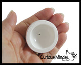 These eyes are simple but a lot of fun. They are a large rubber dome with a playful eyeball printed on it. Kids push the dome inside out and place it on a flat surface. The toy will pop back to its original dome shape causing it to pop up high into the air. This is a fun classic retro toy that never gets old. Pushing the toy inside out is great for hand strengthening, and it is also a fun game to try and catch it after it pops. Each large dome is 1.75" wide x .75" tall!