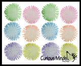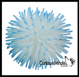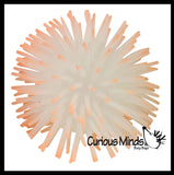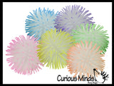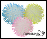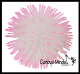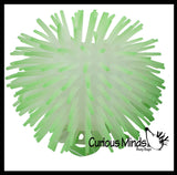 These 4" puffer balls glow in the dark and have soft rubber spikes and a super-squeezable texture. When you squeeze these puffer balls, an air bubble emerges from the interior. For ages 5+.