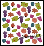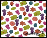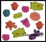 These adorable jiggly critters are Mochi squishy animal toys. THEY GLOW IN THE DARK. Hold them up to a light to activate them and then watch them glow. They have a unique, almost gummy feel. The creatures are soft yet almost sticky and make a nice small finger fidget. They are tacky enough to place on a desk to discretely poke with fingers and would make nice finger warm up tools. These little guys do pick up lint because of the tacky surface. You can wash then coat with some cornstarch to bring them back. Each animal character is individually wrapped making them ideal for party favors or prize boxes. Ages 3+. Each animal is approximately 1.5" -2" and individually wrapped in plastic. Different styles include: Fish, Flapjack umbrella octopus, panda, duck, cat, turtle, cat, bear, and sun. RANDOM COLORS.