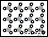 Glows in the dark! Tri-blade fidget spinner. Squeeze the center bearing, give the blades a flick and watch it spin. Very addictive fidget sensory toy. 3".