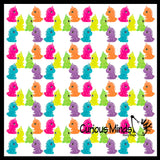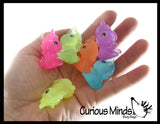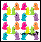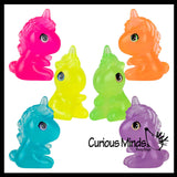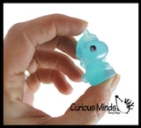 These tiny little unicorns are adorable little collectable characters that are soft and squishy. They come in different glow in the dark colors. Unicorn figures are 1" wide and 1.5" tall.