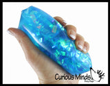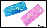 Medium Size - 5" long and 2" wide. Filled with colored colored water and shimmering sparkly streamers. Comes in 4 colors.