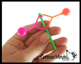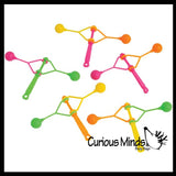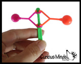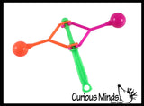 Remember these colorful plastic clackers from when we were kids? It is basically a handle with 2 plastic balls attached on swinging arms. Rotate the toy just right with the correct speed and momentum and you can get them slapping and clapping against each other. It is fun when you can get the one arm to swing into a still ball, which then stops that one and puts the other in motion. Makes a cool repetitive sound for auditory learners. Makes a great party favor. Each clacker is 2.5" tall and has a 2" arm with a ball.