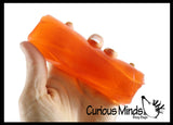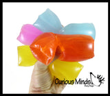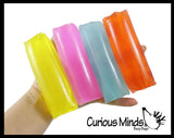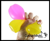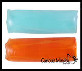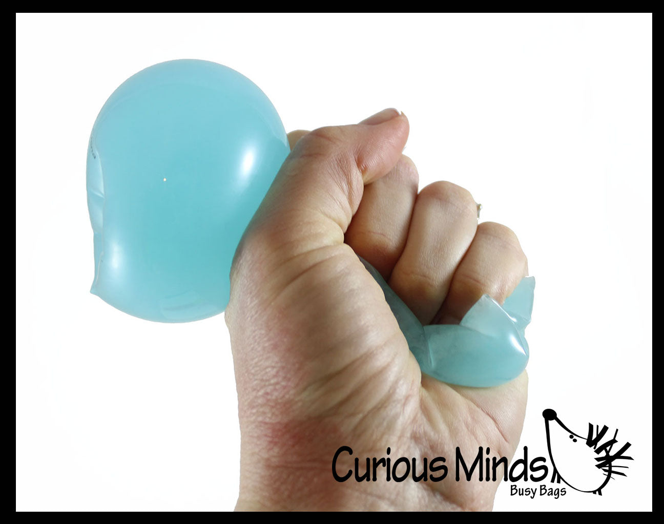 These water snakes are so much fun to squeeze and make the water push out. It makes a soothing water splashing sound as you play. Watch out, this is one of those trick snake tubes that are difficult to hold on to. Give it a little squeeze and it will shoot out of your hands if you are not careful. Trust me you will drop it multiple times as the tube slides inside itself when you hold it. 4.75" x 1.5" x 1.5". They come in 4 bright colors that glow in the dark.