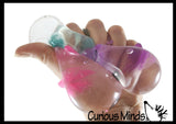 This axolotl shaped ball is a fun water splat toy. Throw it on a wall or the floor and watch it splat flat then slowly come back to life. It also makes a fun stress or fidget ball because it is a water-filled ball that is fun to squeeze and it makes a soothing water splashing sound as you play. The axolotl is 2.5" x 2", and has cute little feet, tail, and gills. Comes in 3 colors.