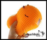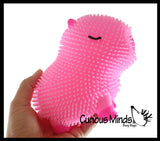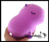 These cute capybaras are air filled puffer sensory balls. These large rodents have a soft and stretchy skin that is covered in a soft little hair like texture. When you squeeze the ball the air pushes out and around making the ball bulge. It is very soothing to feel the little soft hairs on the ball. Capybaras come in 6 colors and are 5.5" tall x 3.75" x 6".
