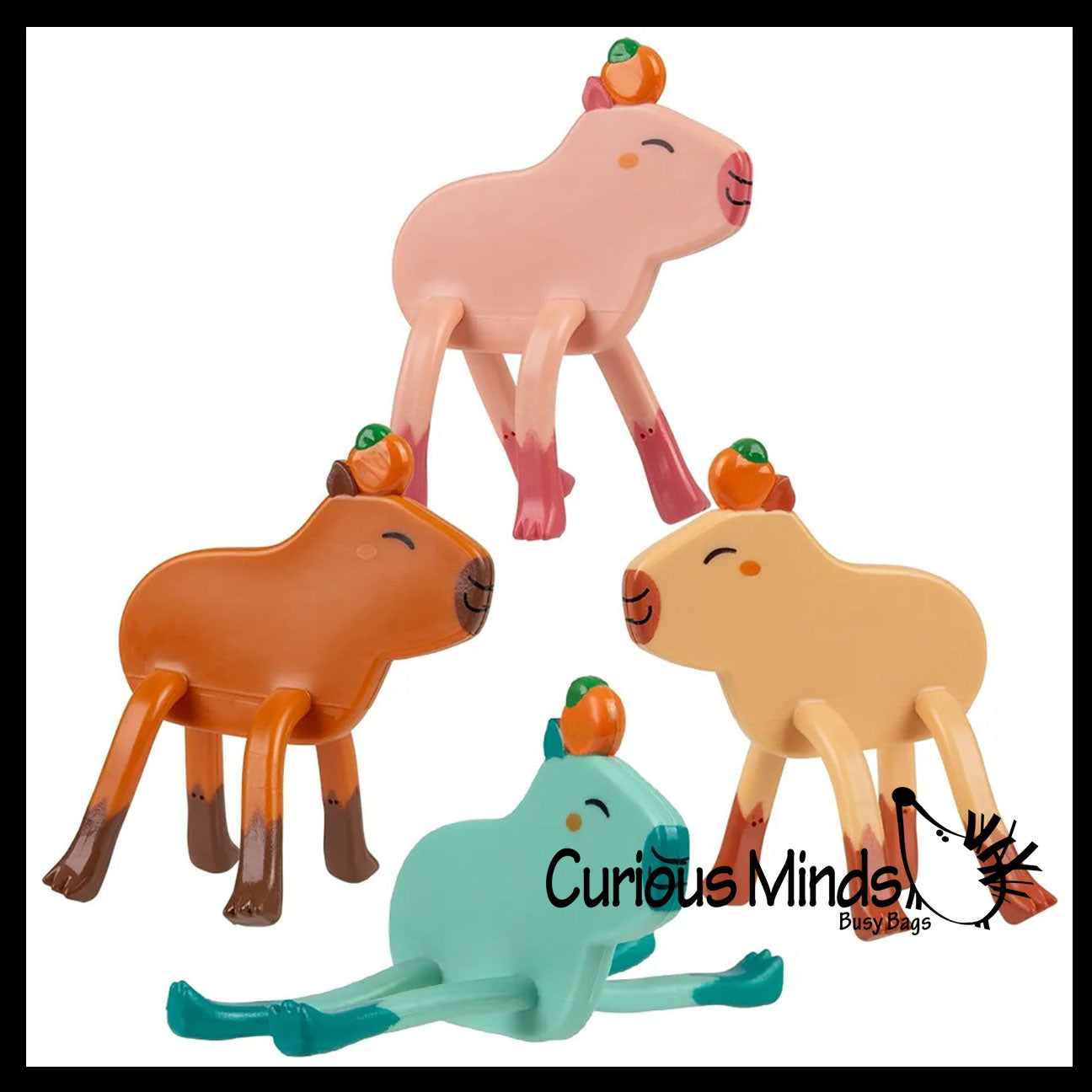 Kids love these bendable flexible capybara animal characters. They are big sized at 3.5" x 2.5". They come in 4 different colors. These are adorable little finger fidgets since you can bend and pose the animals into different positions. They also make cute desk pets and collectables making them perfect for classroom prizes, rewards, gifts, and party favors. Fidgets are a self-regulation tool used with children who have a difficult time sitting still or focusing. Fidgets help promote focus and concentration, and keep the body (fingers) busy so they can still sit and focus! Fidget toys are also great for strengthening hand muscles and building fine motor and finger dexterity.