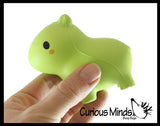 Slow Rise Squishy - Capybaras and slow rise squishies! A perfect combination. This adorable toy is soft foam shaped like the large land rodent, the capybara. Each capybara is 3" tall x 3.5" long, and 1.75" wide. The rodents come in many colors and have 2 adorable face styles. Slow rise squishy fidgets are made from ultra soft spongy foam which slowly rises back to its original shape after being squished. (RANDOM COLOR).