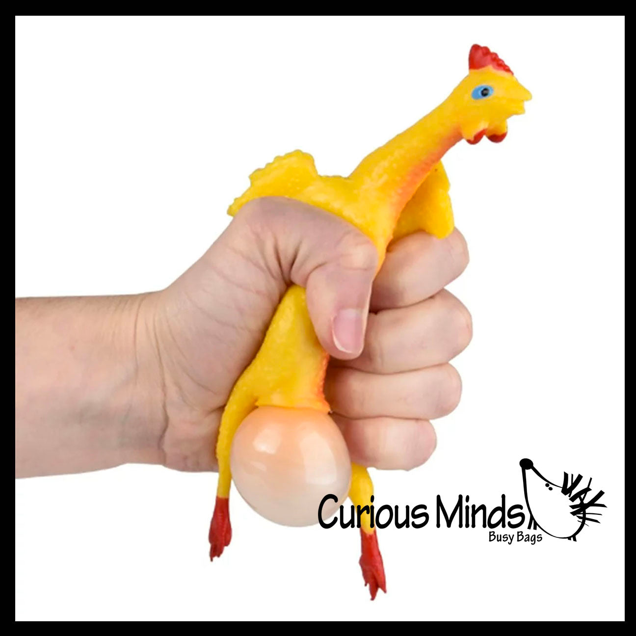 NEW - Large 7" Egg Laying Stretchy Rubber Chicken That Lays An Egg - Squeeze Stretch Funny Gag Toy Fidget - Novelty Toy