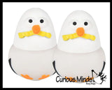 These are chunky seagull shaped stress balls. These birds are not only calming, but it also helps build hand and finger muscles and bilateral coordination. The cute gulls are filled with a unique soft foam / shaving cream fiber filling that feels like soft frosting. It has a super-soft skin, and the naughty thing has a french fry in its mouth. They are 3.5" x 2.5" x 2.5".