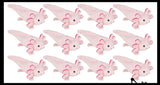 This adorable plush stuffed toy is a tiny axolotl.  This is simply a fun little stuffed animal for kids who like stuffed animals!  Perfect gift for axolotl lovers!  Children and adults of all ages will love this cutie cartoon axolotl for playing and cuddling. Suitable decoration for bedroom, living room, or office.  You can also give it to family, friends, sons, daughters, boyfriends or girlfriends.  Stitched eyes.  7.5" long, 2" wide, 2" tall.  It has crunchy little bean pellets in its stomach.  The beans make it a small and comforting fidget to rub.