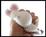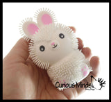 This is a set that includes 2 adorable Easter - Spring themed animals. You get one puffer bunny, and one puffer chick. These adorable animals are air-filled puffer balls. The critters have soft rubber spikes and a super-squeezable texture. When you squeeze these puffer balls, an air bubble emerges from the interior. They make perfect additions to any Easter basket or party goody bag. You could also fit these in medium-sized Easter eggs for an Easter egg hunt!