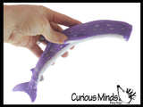 This shark stress toy is so fun to manipulate. This ocean animal is filled with a fine granular filling surrounded by a soft and stretchy silicone shell. This makes the shark irresistible since you can squeeze, poke, pull, stretch and bend it! Smash it flat and roll it back to its original shape. 6.5" long by 1.5" wide.