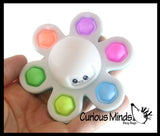 Hard Shell Spinner - This fidget toy is a cute octopus with a hard shell that has soft pop-able bubble buttons on each tentacle. Each octopi is made of a hard plastic with soft pop-able bubbles, and the best part is that it is also a fidget spinner that reveals different emotion faces. Octopus is 3.25" x 1.5". (Random Color).