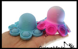 Soft Reversible Octopus - This fidget toy is a cute octopus that has soft pop-able bubble buttons on each tentacle. Each octopi is made of a soft and flexible silicone that can be flipped inside out to reveal a different happy or sad face, and has 8-10 bubbles. Octopus is 3.25" x 1.5". (Random Color).