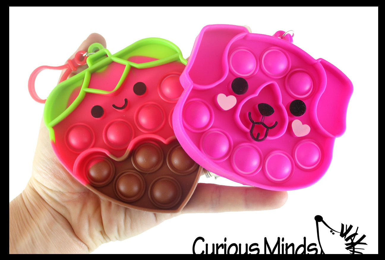 Set of 2 Valentine Bubble Poppers - Strawberry & Dog Valentines Day Bubble Popper Fidget Toy - Fun Party Favor Toy - Heart Love - Fun Party Favor Toy (Random Colors)