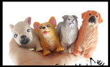 SET OF 4 DIFFERENT DOG BREEDS - Includes one of each of the following breeds: corgie, golden retriever, collie, and bulldog. These cute doggy stress toys are so fun to manipulate. These dogs are filled with a fine granular sand-like filling surrounded by a soft and stretchy silicone shell. The dog is super soft and slightly weighted and has a sand filling inside that add to the sensory experience. The little balls make a quiet crunch like sound when they are squeezed. This makes the puppy irresistible since you can squeeze, poke, pull, stretch and bend it! Smash it flat and bring it back to its original shape. Each pup can be squeezed and stretched!