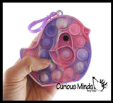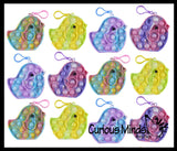 This fidget toy is a small-sized bird that is loaded with soft pop-able bubble buttons. You can poke and pop the bubbles multiple times making it a perfect fidget. Each chick is made of a soft and flexible silicone that has 15 bubbles. Poke the bubbles down and hear a little pop. Turn it over and pop it again! This fidget is a perfect never-ending game of bubble wrap! It is an easy fidget to take with you to school, work, or even in the car or airplane. Birdie is 4.25" x 3.75", and has a clip to attach it to your backpack or purse.