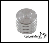 These small metal fidgets are perfect for on your desk. They are a metal shape that has a spiral cut into it. The gyroscope is then placed on a spinning base. Twist the gyroscope and get it to spin to watch they hypnotizing spiral spin over and over.