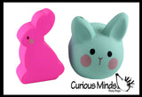 These adorable Easter themed stress toys are ultra soft and squishy. These are the cool slow rise foam squishies. Just squeeze the super soft animal and watch as it slowly comes back to shape. Includes 2 Random color squishies.