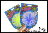 These starfish are wall walkers.  The novelty toys are sticky balls with little legs, and when you throw it against the wall it will bend and flip on its legs all the way down.  Use over and over again.  These assorted small toys would make a perfect addition to any classroom party, birthday party goodie bag, or a prize treasure hunt.   These are 4" x 4" x .75" and have a sticky tacky surface that enables it to stick to walls or ceilings if you throw them. It is a fun game to try and throw and hit a target, or to lay in bed and throw it at the ceiling and wait for it to fall and catch it. The first couple of times you throw it, it will take several minutes to fall, but repeated use will case it to loose some of its tackiness, and it will fall sooner. Eventually, it will loose its stickiness from dust and fibers, simply wash with soap and water and it will get sticky again!  These have come in 4 colors: red, yellow, green, and blue.