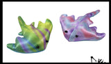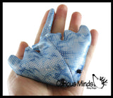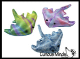 These stingrays are small plush animals that are filled with sand. They are weighted animals for their size making them good tiny little sensory toys that gives compression and self awareness in small areas. Each sting ray is wrapped in a shimmery glittery fabric and have such cute detailing making them adorable gifts or decorations on any desk. Since they are heavy and weighted, they make cute bean bags for themed toss games for parties. Rays are 5" x 4.75" x 1.5". 6.88oz each.