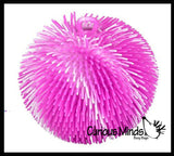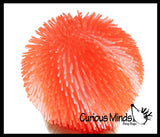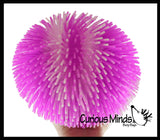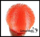 This giant puffer ball has soft rubber spikes and a super-squeezable texture. When you squeeze these puffer balls, an air bubble emerges from the interior. For ages 5+.