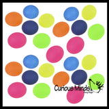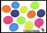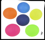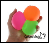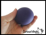 The ball is about 2.4" when it is round, but can be stretched out! This is very calming because it has a very silky soft feel, and you can pull and indent it multiple ways. I like it because you can turn it and pinch it just like you did in elementary school when you made pinch pots with clay. You need to feel it to really know how nice these are.
