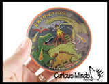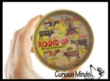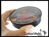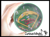 These mazes are so fun! They are a tin puzzle that is topped with a clear cover with a themed colored maze structure with several small ball bearings on the inside that can be moved through the maze by tipping and tilting it! The themed pattern has a bunch of little hole digits that you need to catch the little bb balls in. Place all the balls in the groove to win! These make nice party favors or classroom rewards, and are perfect fun for in the car or airplane! 3.5" x .75".