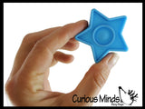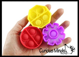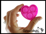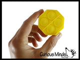This fidget toy is a mini geometric shape that is loaded with soft pop-able bubble buttons. You can poke and pop the bubbles multiple times making it a perfect fidget. Each shape is made of a soft and flexible silicone that has 1-5 bubbles. Poke the bubbles down and hear a little pop. Turn it over and pop them again! This fidget is a perfect never-ending game of bubble wrap! It is an easy fidget to take with you to school, work, or even in the car or airplane. Shapes are 2" x 2", and comes in 6 colors. Color and shape combo is varied. Square has 5 bubbles. Star has 1 bubble. Flower has 1 bubble. Octagon has 4 bubbles. Heart has 3 bubbles, and Circle has 4 bubbles.