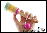 Classic ball and cup toy. Measures 7" tall x 1.5" wide, with a 1.25" ball. The wood toy has a cup on the top end. It also has a wooden ball attached to a string. You can swing the toy just right to get the ball into the cup! This is a perfect vintage toy that the new generation can enjoy and try to master. Non-electronic toy that keeps the kids minds and bodies moving without a screen. Awesome activity for eye-hand coordination, motor skills, and focus and determination. Easy to take with you! Ages 3+. Packaged in a nice net with hang tag.