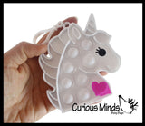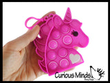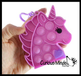 These fidget toys are an adorable Valentines day themed toy that is loaded with soft pop-able bubble buttons. You can poke and pop the bubbles multiple times making it a perfect fidget. Each love decoration is made of a soft and flexible silicone and you can poke the bubbles down and hear a little pop. Turn it over and pop them again! This fidget is a perfect never-ending game of bubble wrap! It is an easy fidget to take with you to school, work, or even in the car or airplane. Clip it on your bag, purse or backpack. Each unicorn is made of a soft and flexible silicone that has 8 bubbles. Unicorns are 4" x 4".