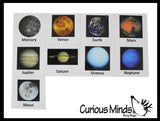 - This set also includes 9 laminated cards professionally printed on 100# cardstock and laminated with 5 mil lamination. The cards are classroom tough. Cards are 2.6"x 2.5". The cards display a picture that matches each of the 9 planets.