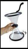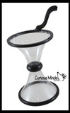 This large bank is so cool. It is an hourglass shaped bank that causes the coins to spin when you drop a coin in, it will swirl and defy gravity as it goes in a vortex! This is a fun way to keep your loose change safe and saved! Bank is 10.5" tall and 7" wide. Bank snaps together easily.