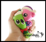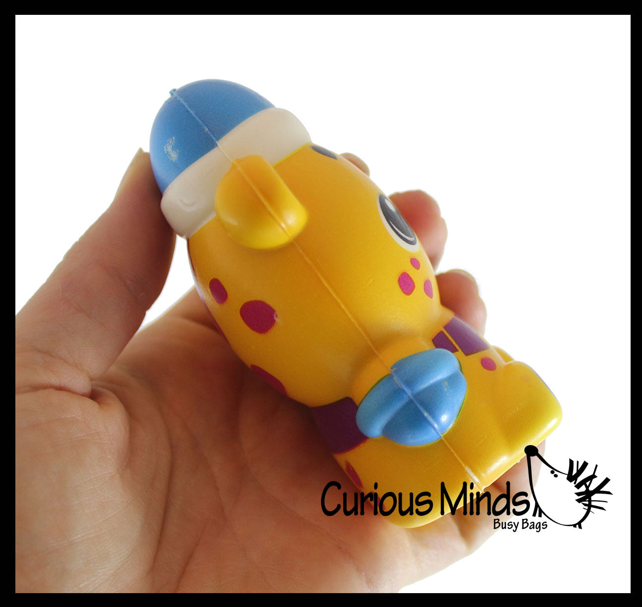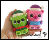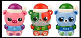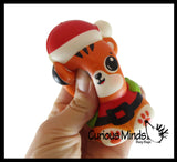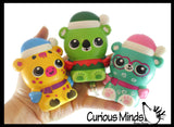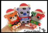 These Christmas themed toys are made from the cool memory foam slow rise squishy material.  It is super soft and squishes easily then slowly comes back to its shape.  The squishy toys make a perfect holiday or winter party favor or prize and also a perfect stocking stuffer.  Since it is a squeezy toy it makes a fun stress ball and helps build hand strength!  Comes in 12 different animal styles all dressed up in winter clothing.  Animals are 4" tall, by 2.5" wide, by 1.75" deep.