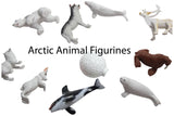 ***** Arctic Animals Set - includes 10 miniature realistic animals. (2"- 3" Long) Harp seal, arctic rabbit, beluga whale, walrus, polar bear, killer whale (Orca), caribou/elk, arctic fox, husky, and igloo.