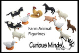 ***** Farm Animal Figurine Set includes 12 miniature realistic animals. (2"- 3" Long). Cow, bull, goose, chicken (hen), rooster, duck, goat, pig, ewe (sheep), ram, horse and dog.