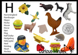 This Montessori language alphabet object lot is one of several I have available. This listing is for H word alphabet miniatures